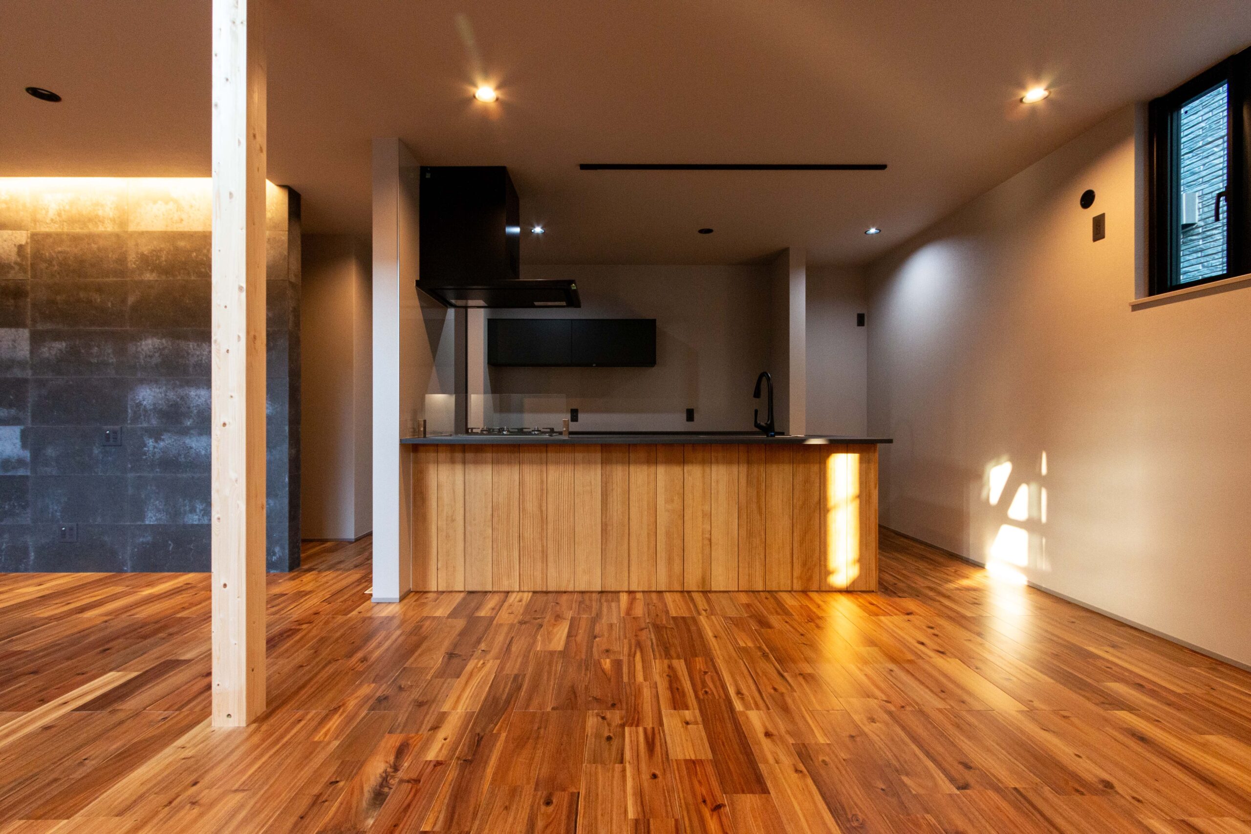さらに、玄関にはダークトーンのホテルライクな手洗い洗面スペースを備え、洗練された印象を与えます。これらの特徴が、ただの家ではなく、スタイルと快適さを兼ね備えた空間へと導きます。