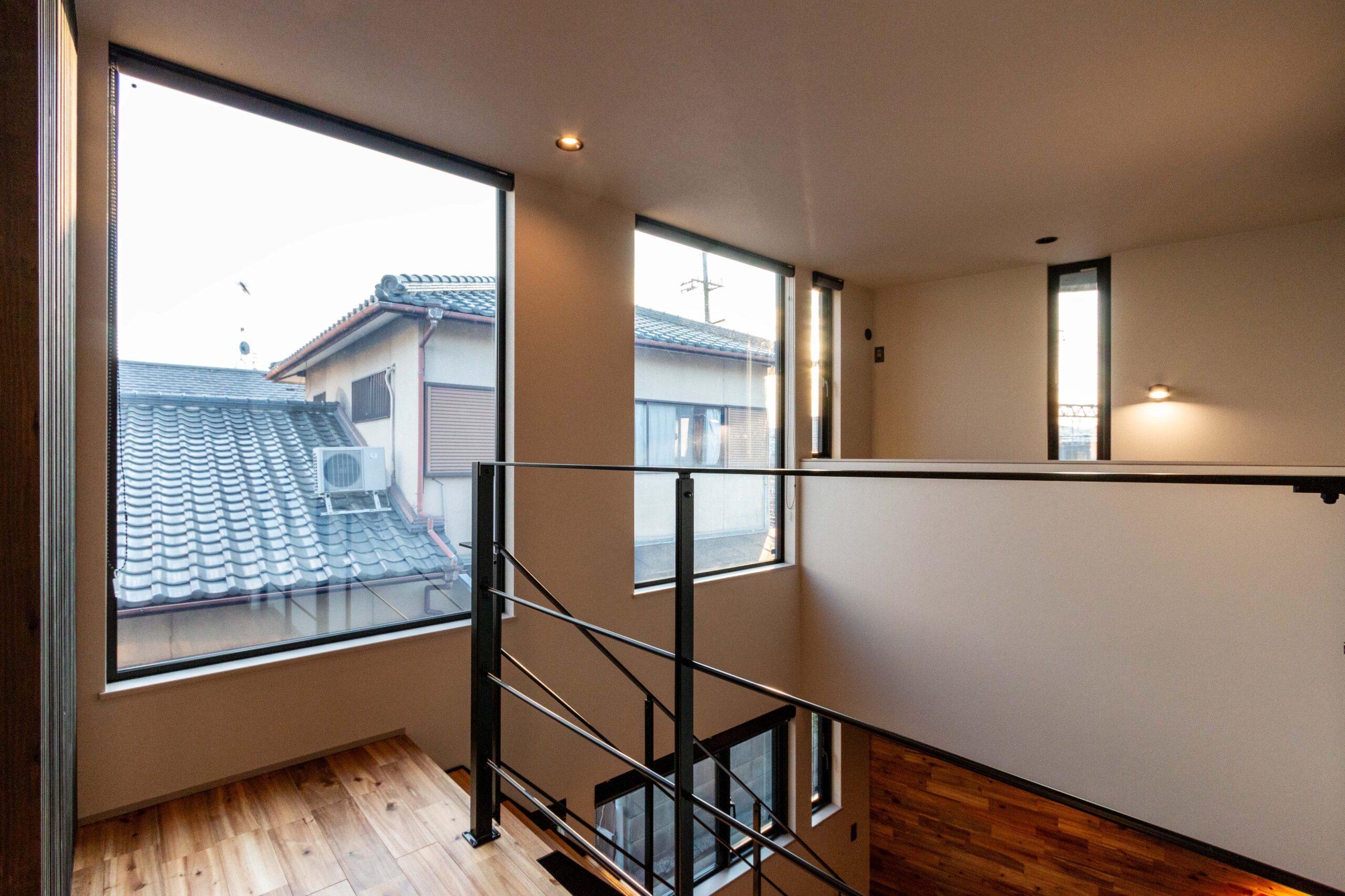 こちらの住まい、外との繋がりを断っているかのような少し近寄りがたい雰囲気を持っていますが、中に入ると、吹き抜けにある大きな窓からたっぷりの自然光を取り込んだ開放感溢れる空間を実現。