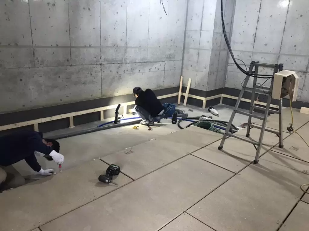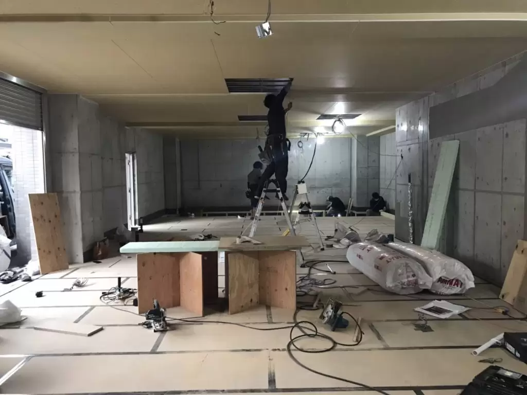こちらは床のレベルを合わせている様子で、この上にフローリングを貼っていきます。