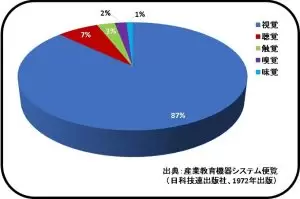 その中でも、80%以上の情報を視覚から得ていることがこちらのグラフから読み取れます。