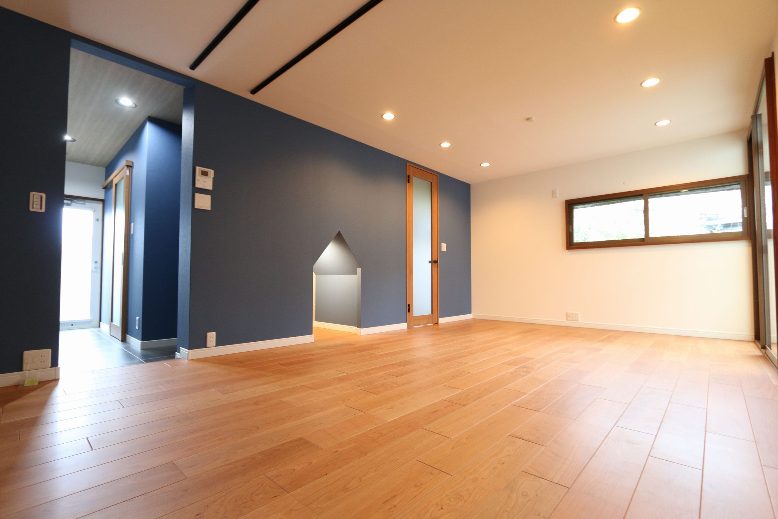 古いデザインの居室も、フルリフォームなら新しい空間に生まれ変わります。城陽市のS様邸のリフォームでは、デザイン性のあるドアやアクセントクロスを採用し、施主様のセンスが光る家に。フローリングや窓も新しく取り換えて、家族が集う空間に仕上がりました。