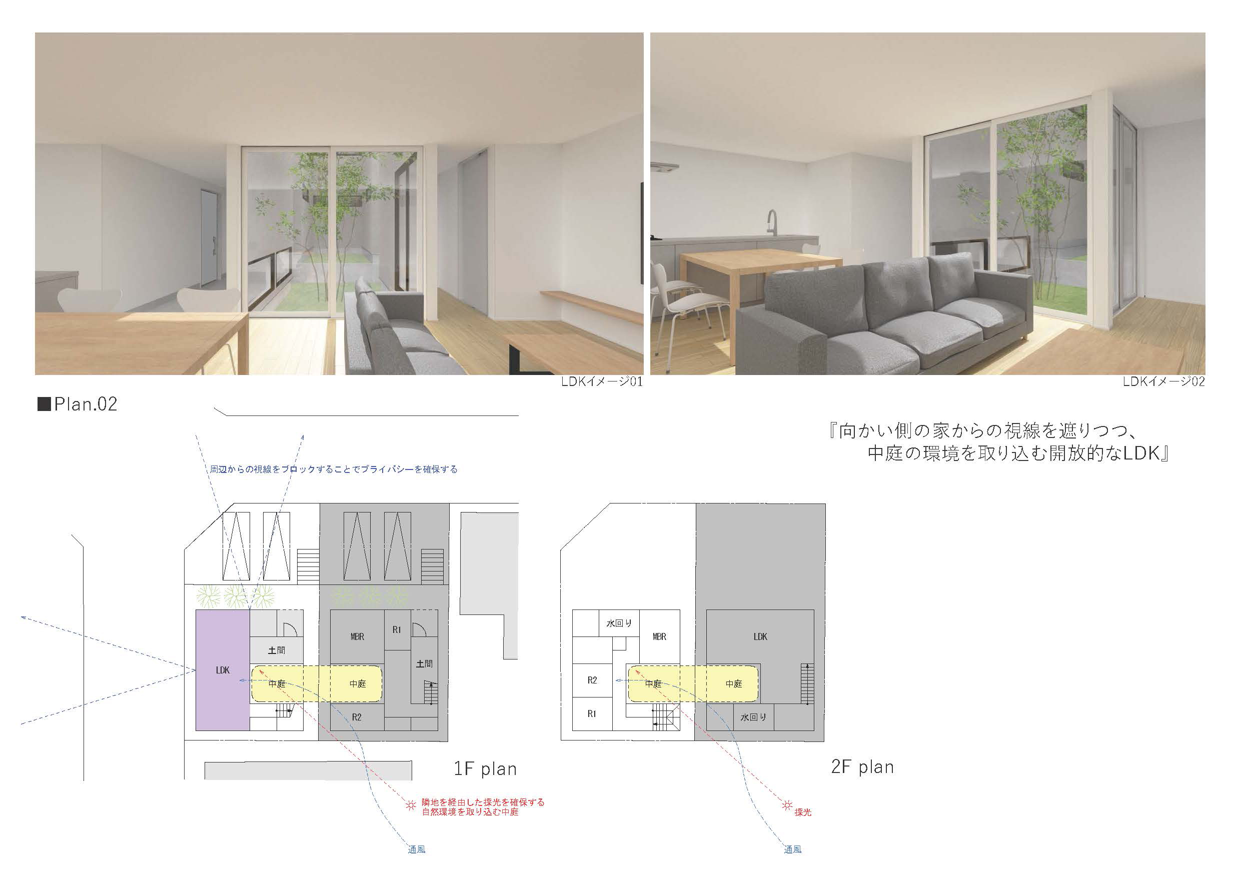 2棟の参考プランは、グランライフの建築家がこの土地の特性を読み解き、一つの回答を導きだしたプランです。